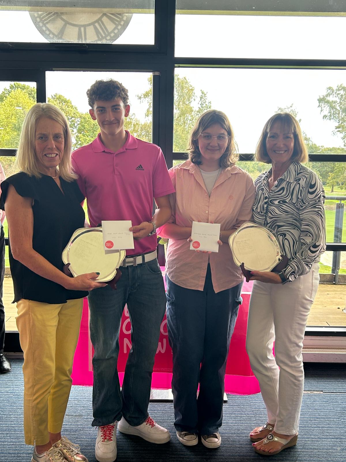 The event was well supported with 80 competitors from 22 different clubs across the county. As is the tradition all players wore pink and we had some wonderful outfits! The weather was very kind with a bright sunny autumnal day and the course in excellent condition which provided some strong Greensomes Stableford scores.